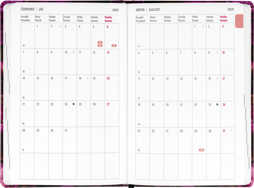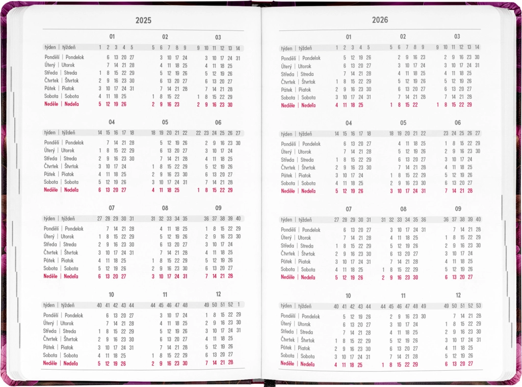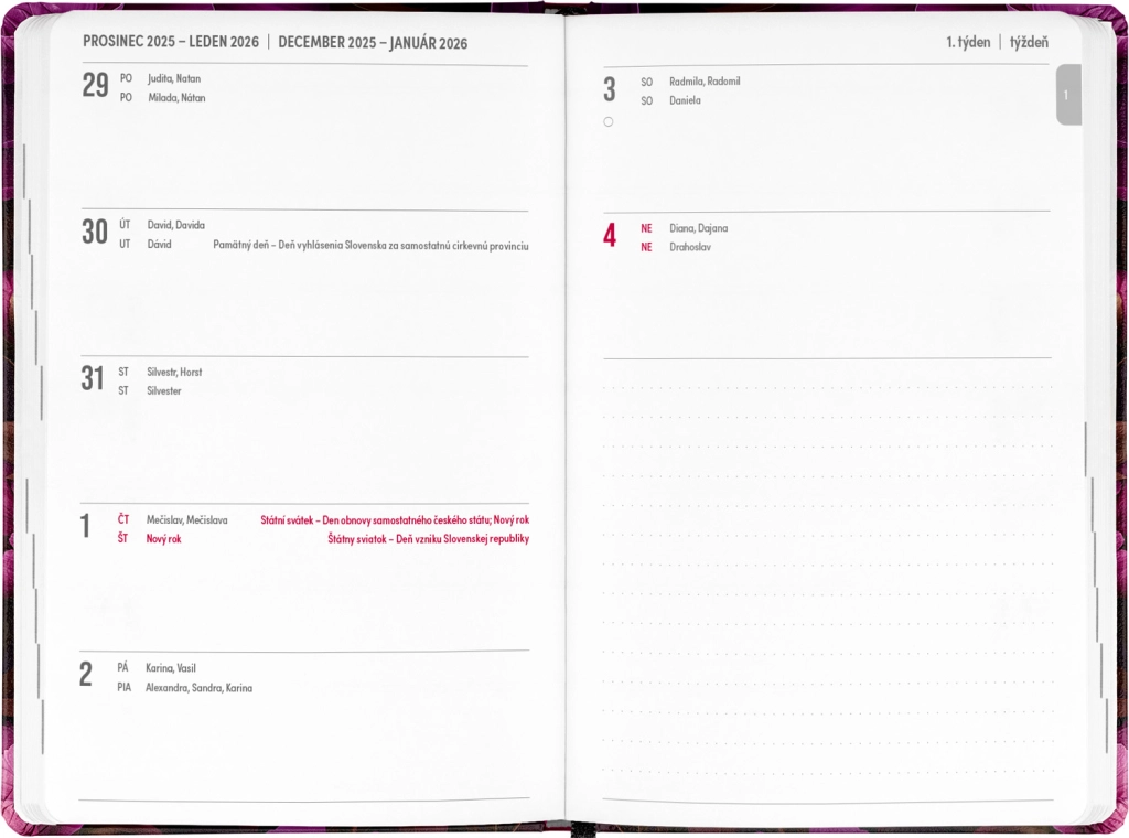 - Calendario semanal lineal checo-eslovaco con nombres y festivos