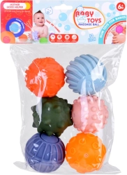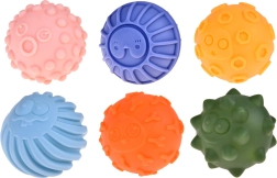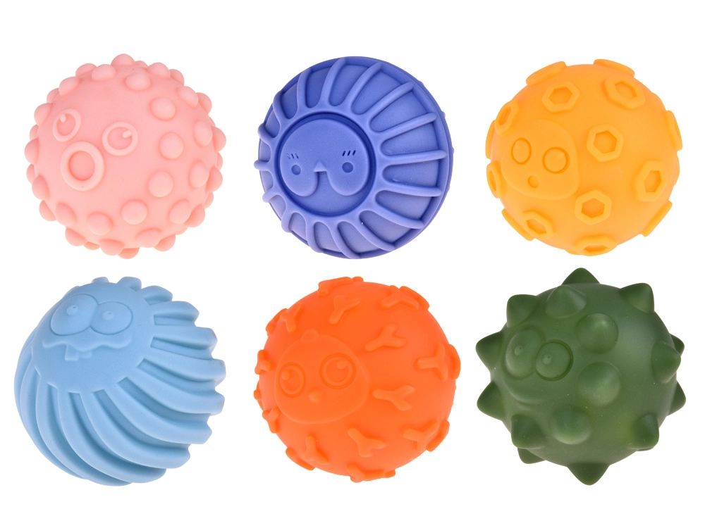Cada una de las seis pelotas tiene una forma y textura diferentes, y diversas protuberancias que estimulan el sentido del tacto y favorecen el desarrollo de los receptores sensoriales. Esto ayuda al desarrollo de la coordinación y de las habilidades táctiles de los niños.