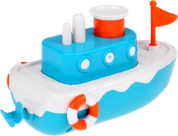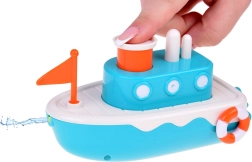 Este barco infantil ofrece una experiencia interactiva con un botón que expulsa agua para mayor diversión durante el baño.