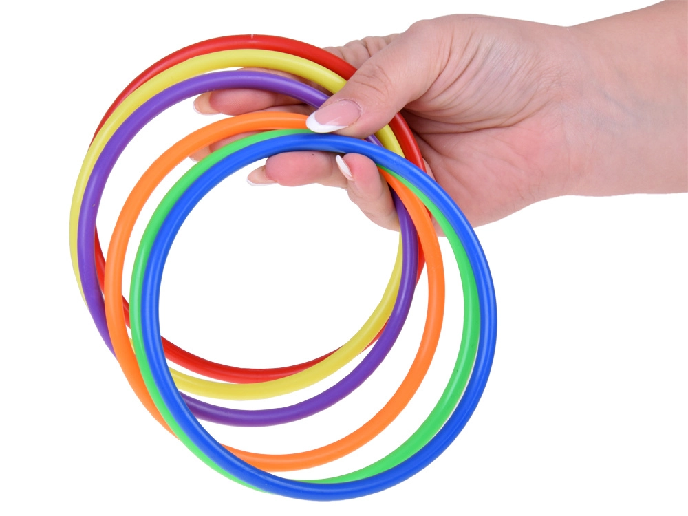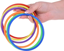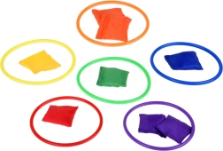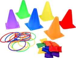 Este set de juego es ideal para niños a los que les gusta pasar el tiempo de forma activa. Incluye seis conos de colores, doce saquitos de tela y doce aros de plástico que permiten distintos tipos de juegos. Los niños pueden mejorar su coordinación y precisión al lanzar y apuntar.