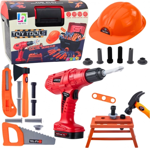El juego de herramientas infantil permite a los pequeños manitas jugar con seguridad con herramientas que parecen reales. El taladro eléctrico a pilas tiene puntas intercambiables: plana, de cruz y broca. Además, el set incluye un banco de trabajo y un casco de protección para una experiencia de juego aún más realista.