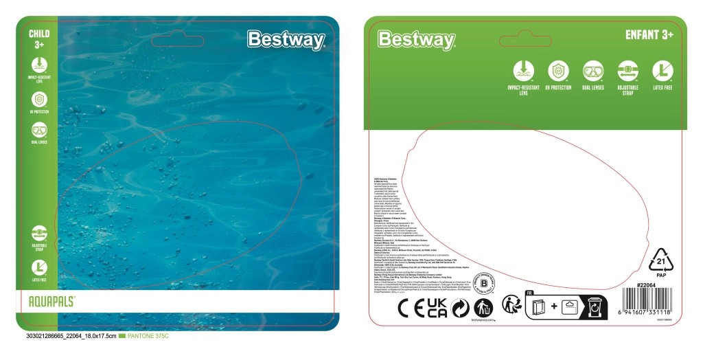 Las gafas están diseñadas para niños a partir de 3 años y brindan muchas aventuras acuáticas seguras y cómodas.