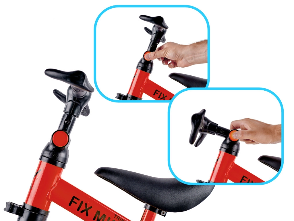 Ajusta el manillar (41–50 cm) y el sillín (31–38 cm) en un momento para la posición correcta y comodidad en cada fase de aprendizaje.
