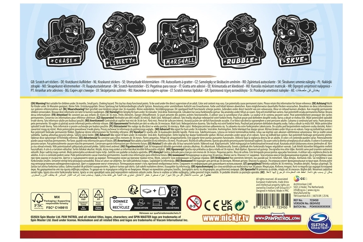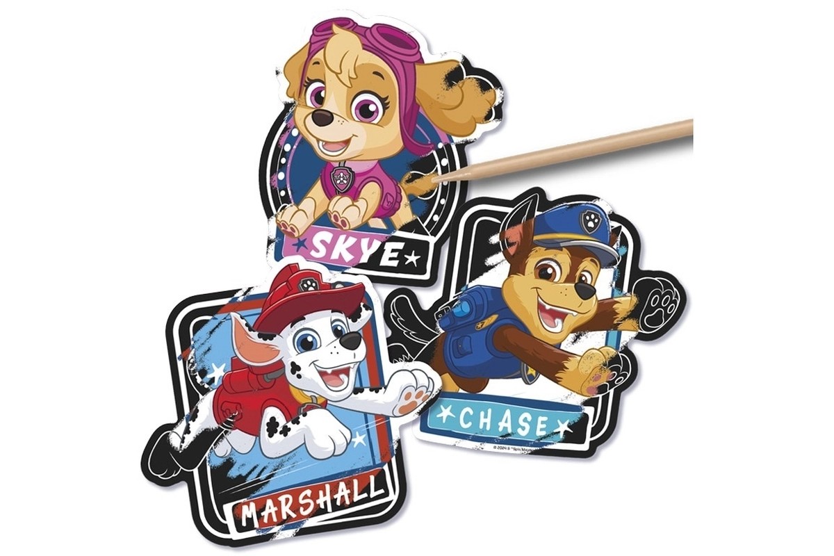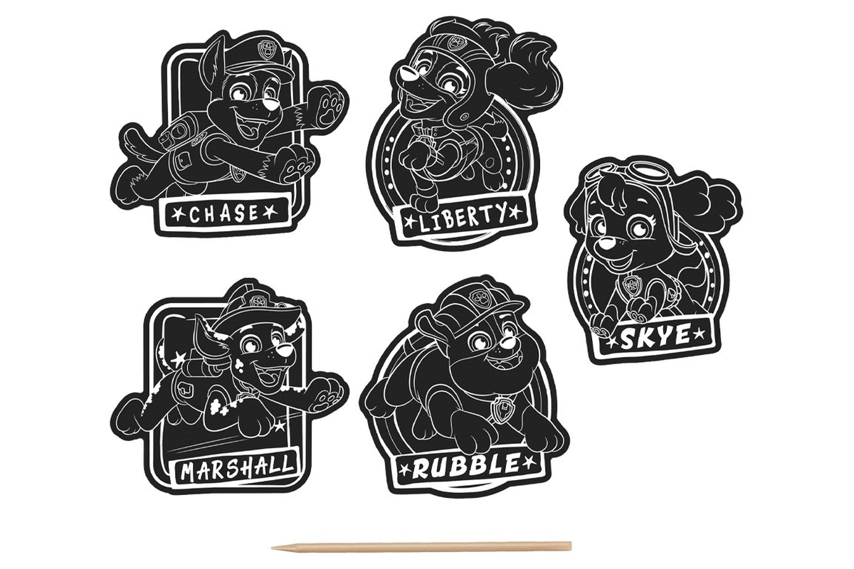Crea tu propia colección de pegatinas con motivos de la PATRULLA CANINA. Solo tienes que rascar suavemente la capa negra y poco a poco descubrirás los colores vivos y los detalles de cada personaje. Los motivos terminados son autoadhesivos, así que puedes usarlos de inmediato para decorar material escolar, regalos o tarjetitas.