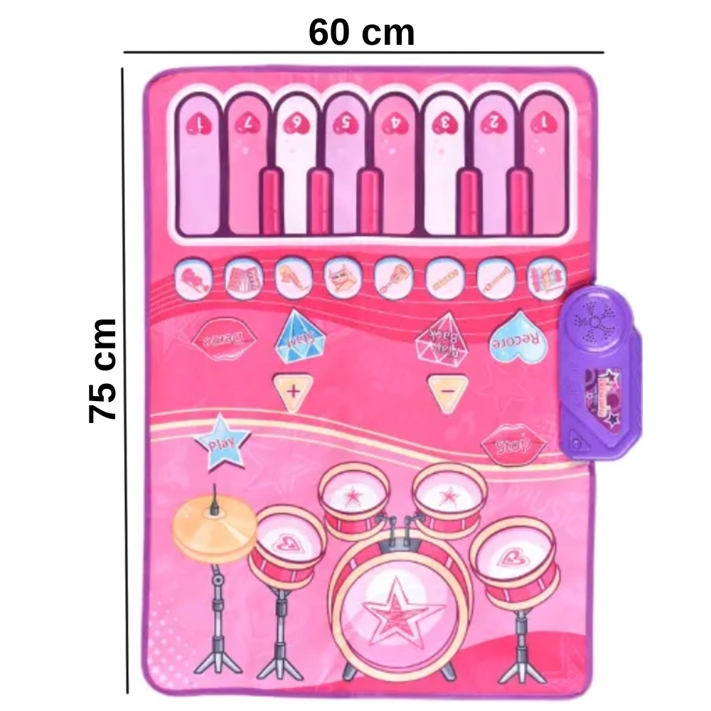Descubre la alegría de la música con la alfombra musical infantil WOOPIE 2 en 1. La gran superficie acolchada combina teclas de piano y una zona de batería, para que los niños puedan tocar con las manos, con los pies o con las baquetas incluidas. Gracias a la función de grabación pueden guardar fácilmente sus primeras melodías, mientras que el volumen ajustable asegura un juego cómodo en casa y durante los viajes.
