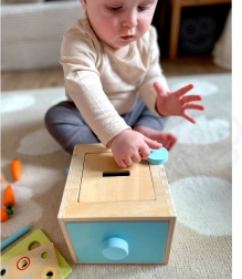 La caja de madera con cajón de la marca Woopie es un excelente juguete diseñado para niños a partir de 12 meses, que combina diversión y aprendizaje. El juguete ofrece una aventura única con diferentes niveles de dificultad que desarrollan las habilidades del niño.