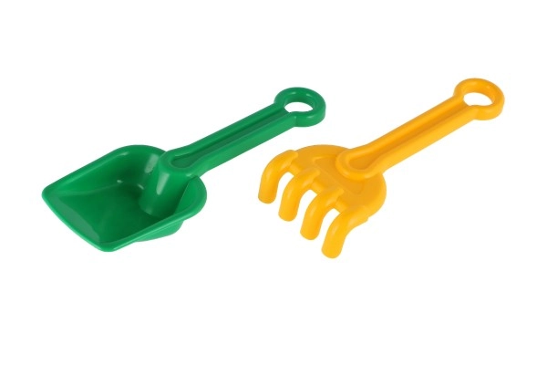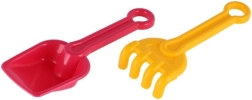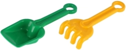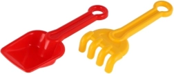 La pala y el rastrillo con bordes suaves están adaptados a las manos pequeñas de los niños. Apto desde 12 meses e ideal para los primeros juegos en la arena.