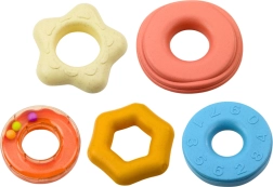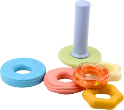 Cada aro tiene una textura diferente y uno de ellos incluye un sonajero. De este modo, el juguete proporciona diversos estímulos sonoros y sensoriales que favorecen el desarrollo de la percepción y la concentración. Todas las piezas están fabricadas con materiales seguros y duraderos, sin sustancias nocivas, totalmente adecuados para los más pequeños.