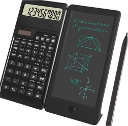 La nueva calculadora científica con funciones avanzadas está diseñada para un uso cómodo y fácil de transportar gracias a su estructura plegable. Está equipada con un completo conjunto de funciones científicas, un bloc LCD digital para tomar notas y un lápiz óptico para un trabajo preciso.
