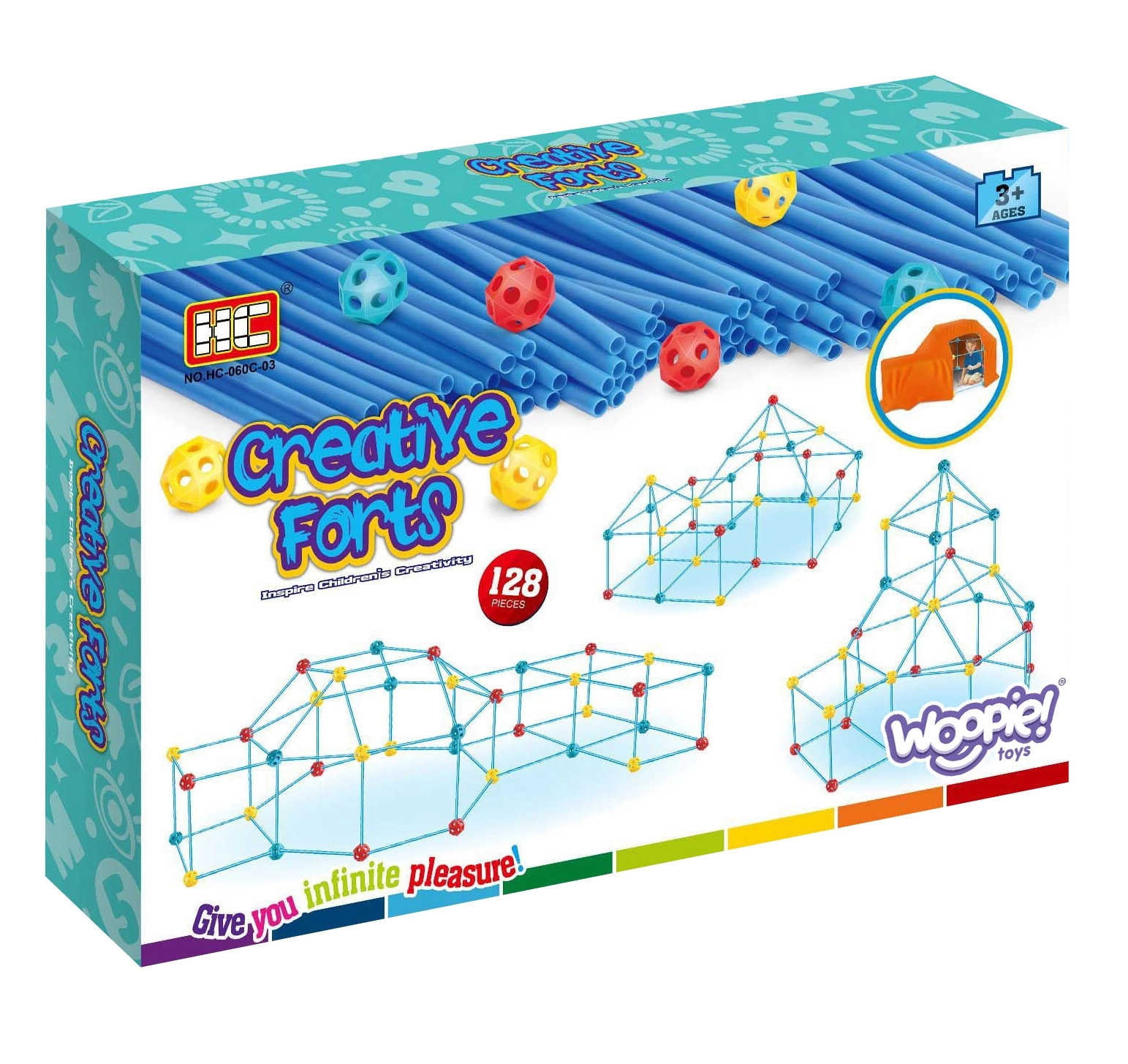 El set es ideal para desarrollar las habilidades creativas de tu hijo. Contiene un total de 128 elementos que permiten construir diversas estructuras tridimensionales, incluida una tienda.