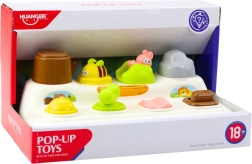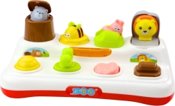 En la superficie del juguete hay varios elementos: un interruptor, una perilla giratoria, un deslizador y botones; cada uno activa una ventanita diferente de la que “aparece” un tierno animalito. El mecanismo Pop-Up aporta mucha alegría a los niños y, al mismo tiempo, les enseña a comprender la relación de causa y efecto: el niño ve que una acción realizada provoca una reacción concreta.