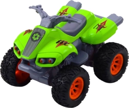 La tracción mecánica garantiza que, tras un empujón, el quad acelere hacia adelante, lo que proporciona mucha diversión y motiva al niño a moverse y a experimentar con la velocidad. La carrocería en colores vivos con detalles gráficos llamativos aporta un carácter deportivo al quad.