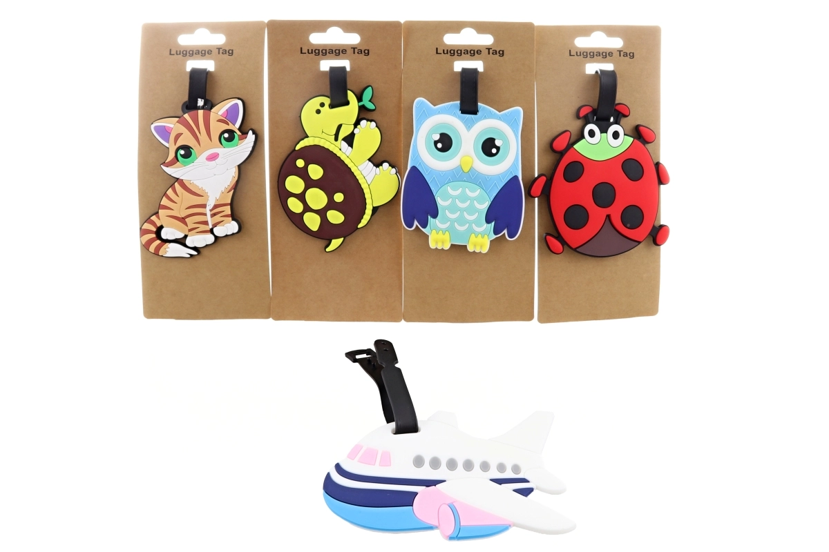 Práctica etiqueta para maleta o mochila hecha de plástico blando con dimensiones aproximadas de 12x8 cm. Ideal para identificar fácilmente tu equipaje.