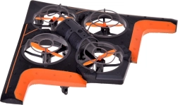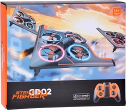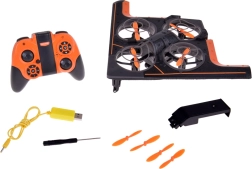 El dron está fabricado con materiales ligeros y duraderos como poliestireno y plástico, que ofrecen un manejo rápido y ágil. Utiliza iluminación LED para una mejor visibilidad durante el vuelo y su forma recuerda a una nave espacial. El paquete incluye dron, joystick, hélices de repuesto, soporte para teléfono, cable USB y destornillador.
