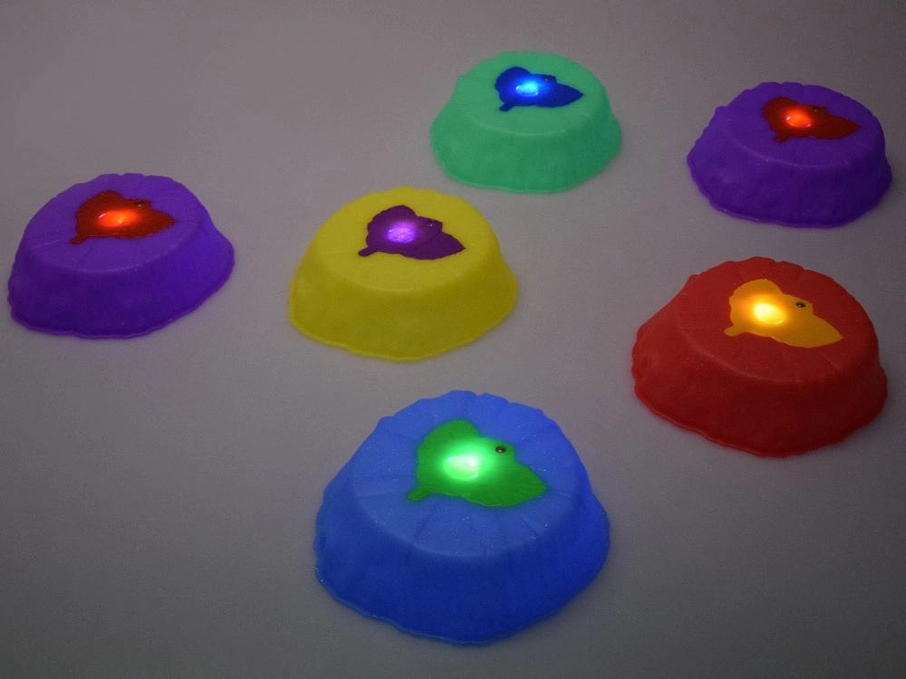 Cada una de las piedras de la senda cuenta con gráficos de motivos naturales que estimulan el tacto. Bajo la capa gráfica se encuentran las pilas y un interruptor, gracias a lo cual las piedras pueden encenderse fácilmente. Al encenderse, las piedras emiten una luz brillante, lo que motiva a los niños a moverse y jugar.