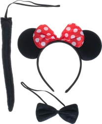 Este set completo de disfraz de ratoncito es ideal para carnaval, Halloween, festivales escolares y juegos en casa. A las icónicas orejas con lazo rojo de lunares se suman la pajarita y la cola negras, de modo que el disfraz está listo en cuestión de segundos.