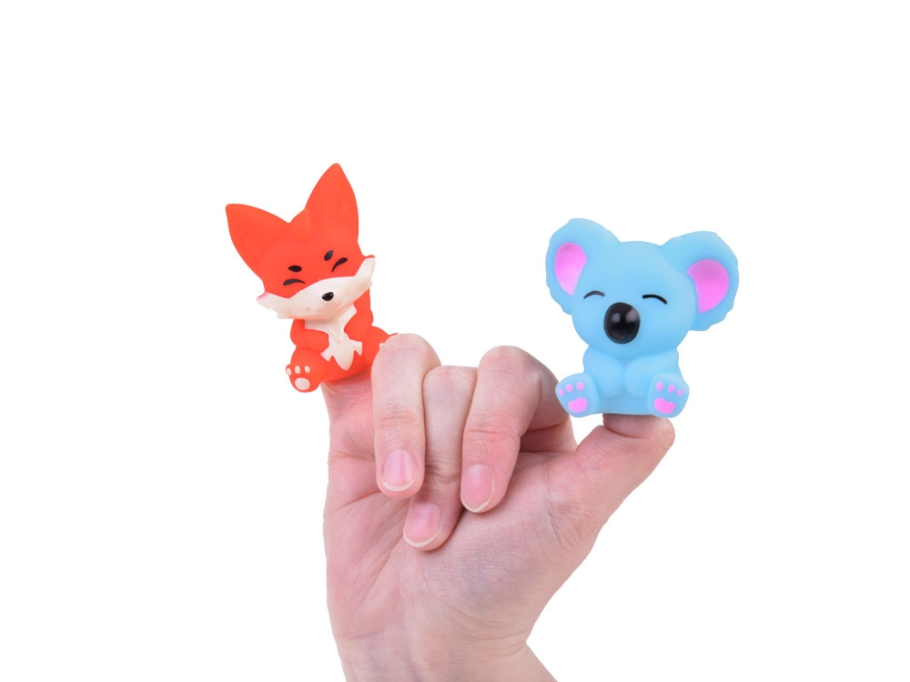 Estas figuras de goma representan distintos animales que, por sus colores vivos, atraen inmediatamente. Cada figura tiene una abertura que permite colocarla en el dedo. Así, niños y padres pueden asumir diferentes roles, dar vida a los animales mediante diálogos, historias y pequeñas escenas. Este juego es una gran oportunidad para desarrollar la imaginación, la creatividad y las habilidades lingüísticas.