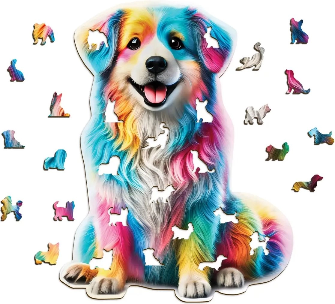 Rompecabezas de madera WOODEN CITY con 250 piezas en forma de perro arcoíris que ofrece una experiencia de armado única. Gracias a las piezas cortadas con láser en forma de animales y al embalaje ecológico, destaca por su originalidad.