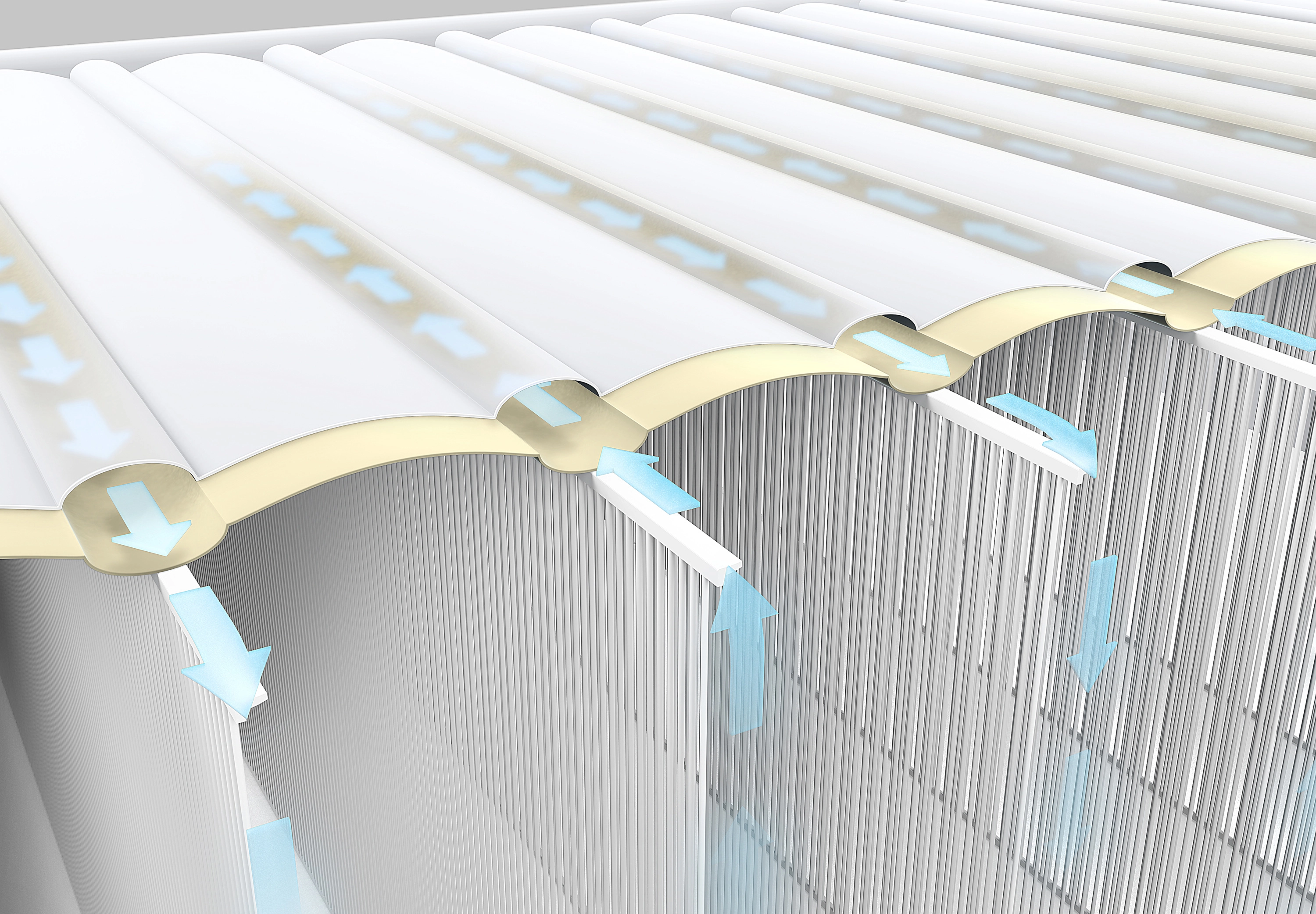 Las cámaras reforzadas con fibras de poliéster aumentan la rigidez y la durabilidad. Dura‑Beam distribuye el peso de manera uniforme y favorece la alineación correcta de la columna.