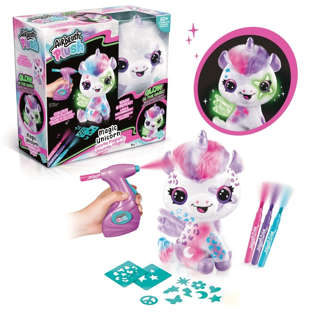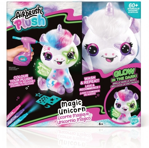 Desata tu creatividad con el estudio de aerografía para crear un unicornio que brilla mágicamente en la oscuridad. En este set encontrarás todo lo necesario para diseñar tu creación única: