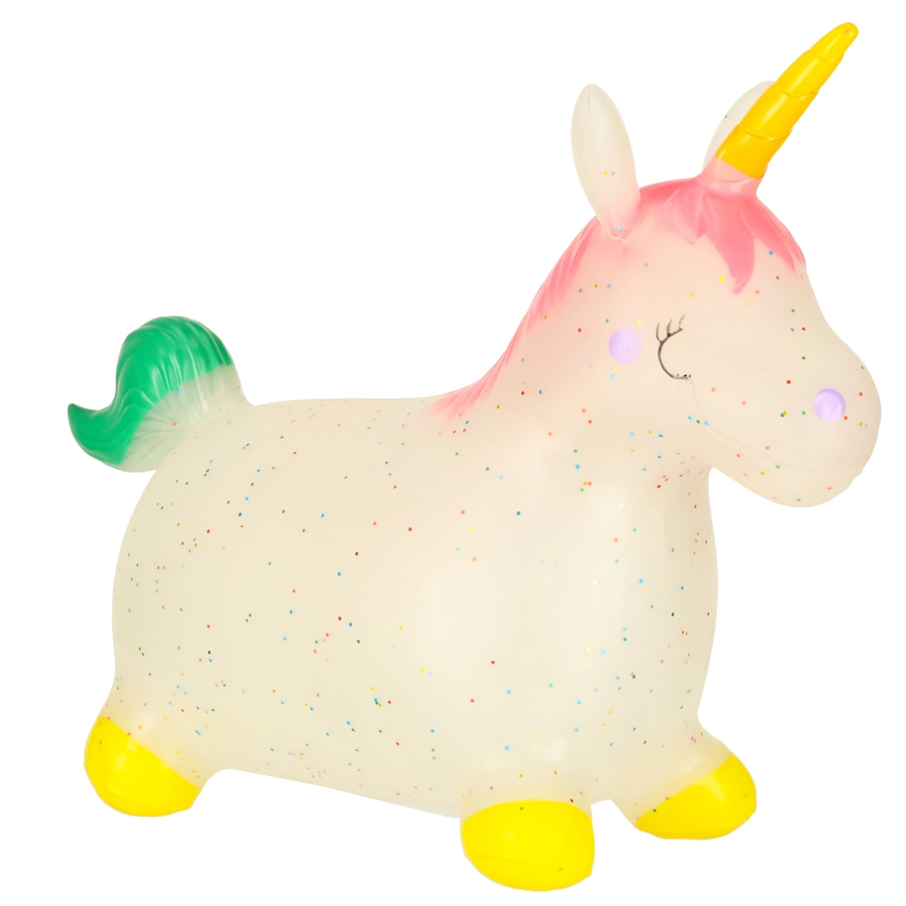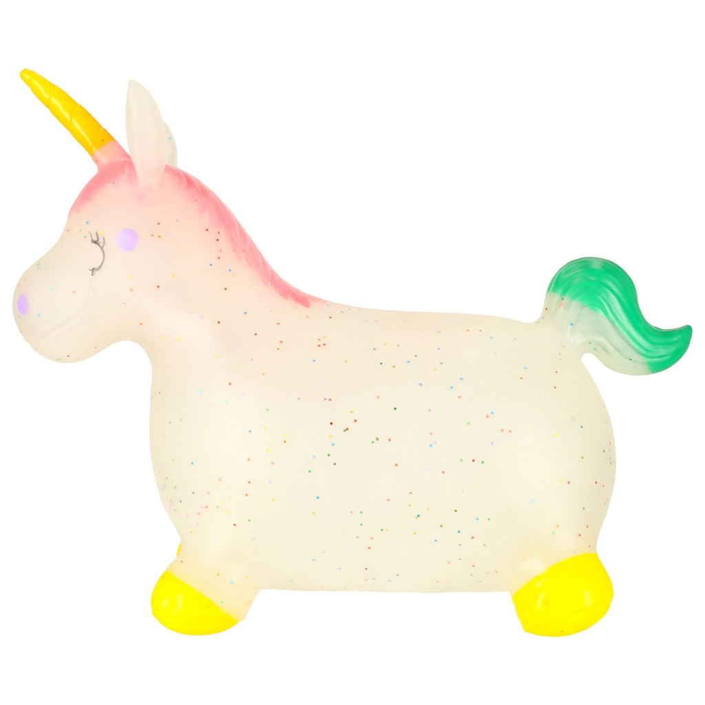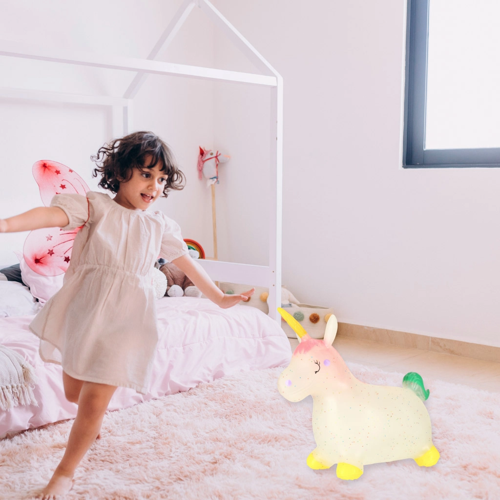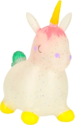 Fabricado en goma flexible y resistente, el unicornio saltarín es suave y elástico, con seguridad certificada.