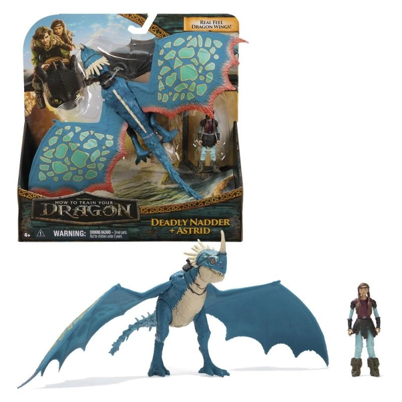 Entra en el mundo de Berk con el icónico dúo de la película Cómo entrenar a tu dragón. El dragón azul con amplias alas y silla para el jinete se acompaña de la figura articulada de Astrid con armadura vikinga. Los detalles realistas, las escamas texturizadas y los colores llamativos despiertan la imaginación y garantizan horas de diversión.