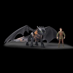 Descubre el icónico dúo de Cómo entrenar a tu dragón. Desdentao (aprox. 32 cm) y Hipo (aprox. 8 cm) cobran vida gracias a sus detalles fieles, articulaciones móviles y alas con textura realista para una experiencia sensorial aún mejor. Gracias a los pernos firmes del sillín, Hipo puede sentarse fácilmente sobre el lomo del dragón para revivir escenas favoritas o inventar nuevas misiones.
