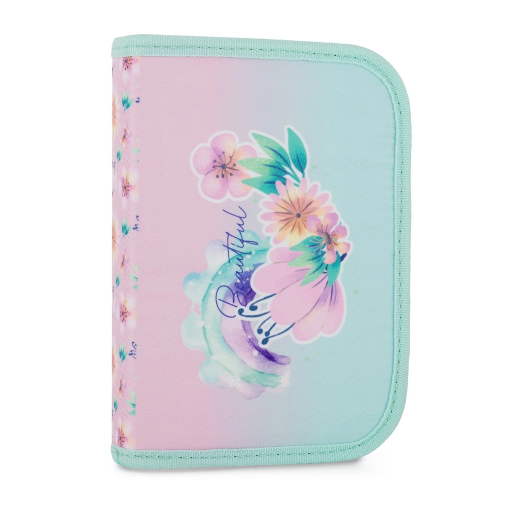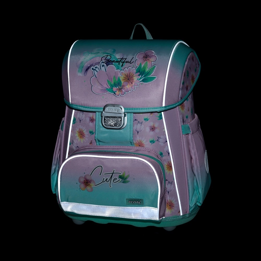 Set escolar premium con estampado floral que incluye una mochila tipo cartera con forma anatómica, una práctica bolsa y un estuche con estilo. Ergonomía perfecta y colores vibrantes garantizan la alegría del uso diario.
