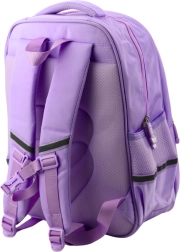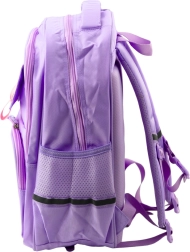 Nuestra mochila escolar morada ofrece dos compartimentos principales espaciosos. El compartimento principal está equipado con un bolsillo interior para organizar fácilmente libros y material escolar. En la parte frontal hay otros dos bolsillos y en los laterales bolsillos elásticos para botella.
