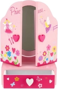El encantador espejo de tocador infantil con joyero con el motivo PRINCESS alegrará a cualquier pequeña coqueta. Espejo tríptico con paneles laterales para una mejor visibilidad, cajón para tesoros práctico y fabricación de madera resistente en un delicado color rosa. Ideal para guardar anillos, pulseras y cuentas y para fomentar el juego creativo.
