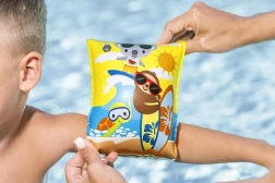Ayuda a los pequeños a amar el agua con los manguitos inflables BESTWAY. Gracias a las cámaras de aire dobles ofrecen seguridad y estabilidad, mientras que la superficie lisa es suave con la piel infantil. Los divertidos motivos con frutas y animalitos mejoran la visibilidad en el agua y hacen del aprendizaje una diversión.
