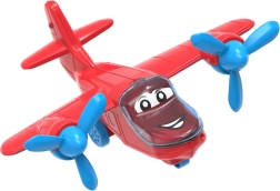 Este juguetón avión de plástico con rostro amistoso está listo para despegar en cualquier momento: su desplazamiento libre garantiza un movimiento fluido por el suelo sin pilas. La cabina abatible permite a los niños mirar dentro o colocar sus mini figuritas, fomentando historias creativas y el juego de roles.