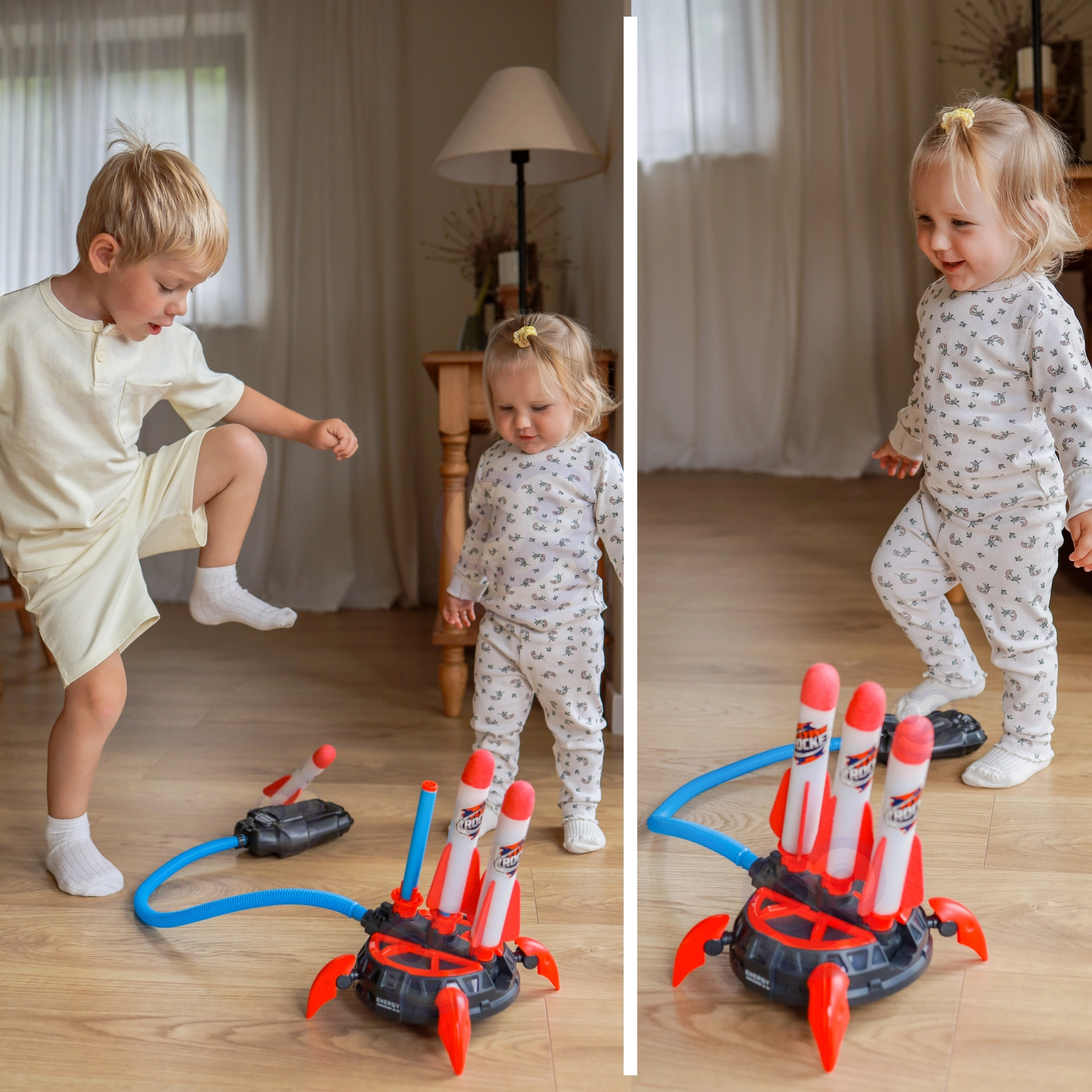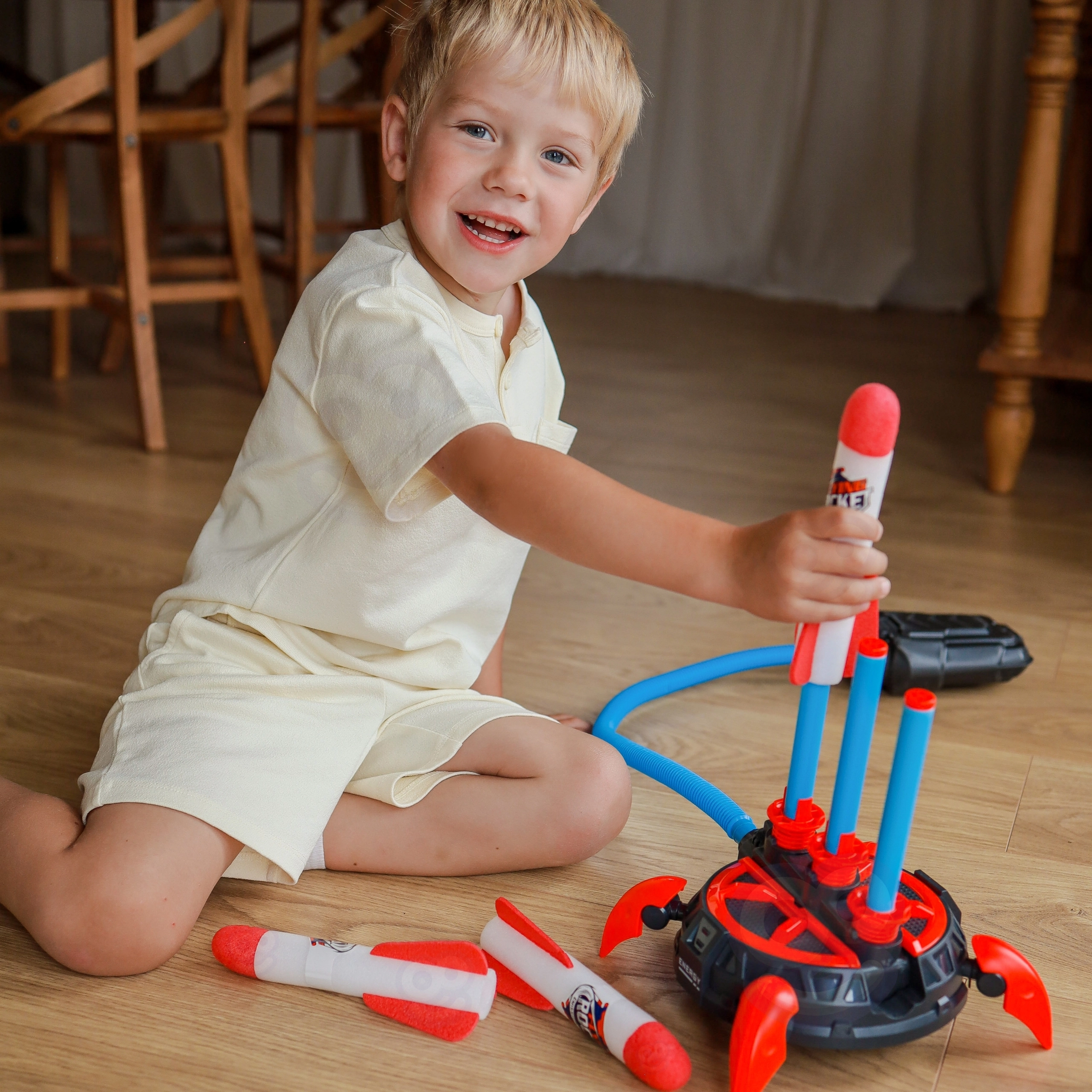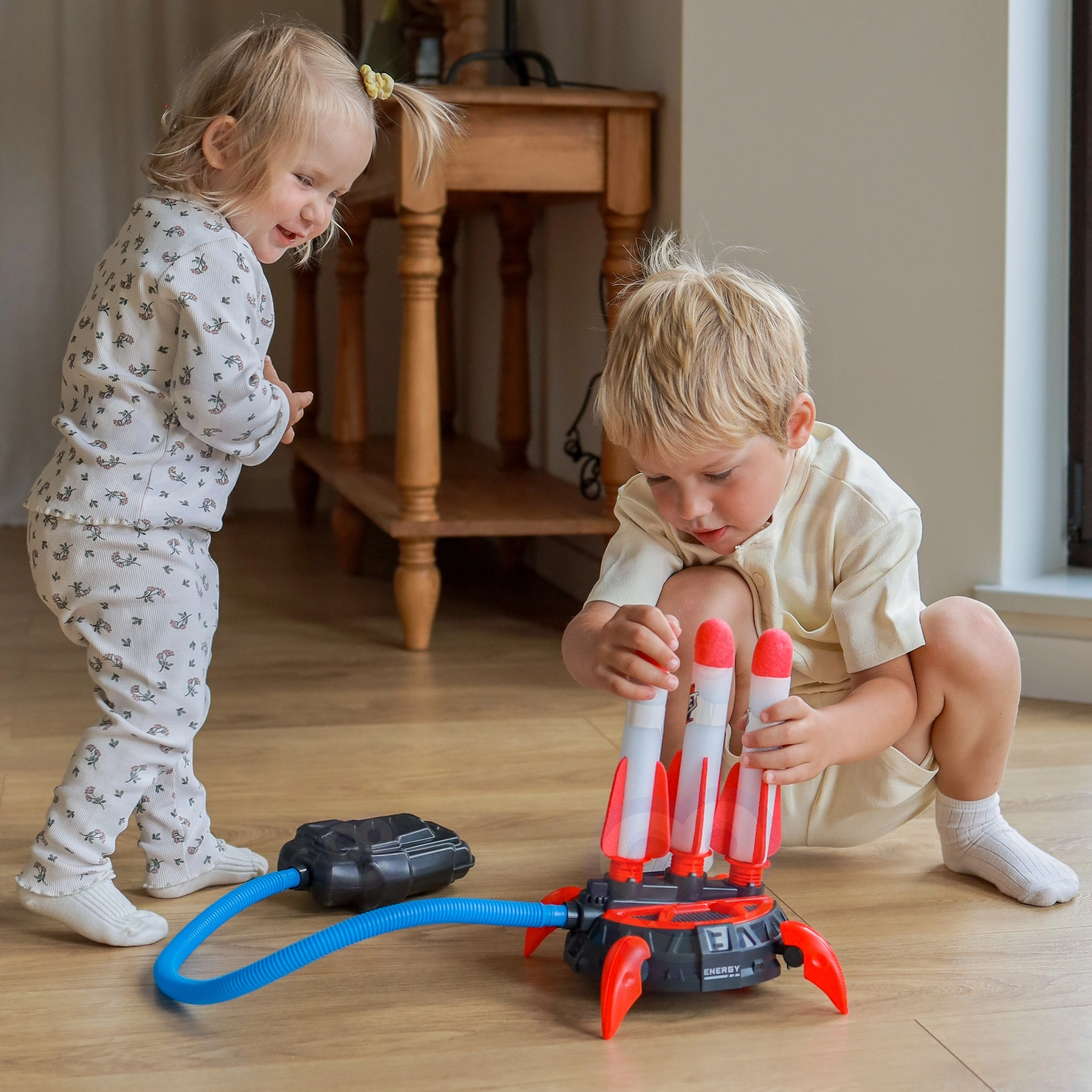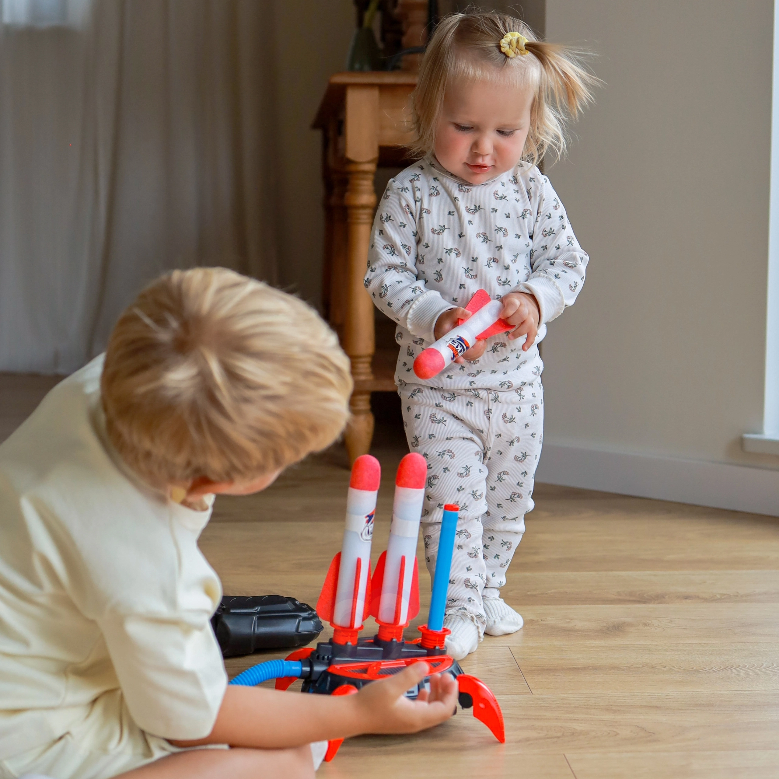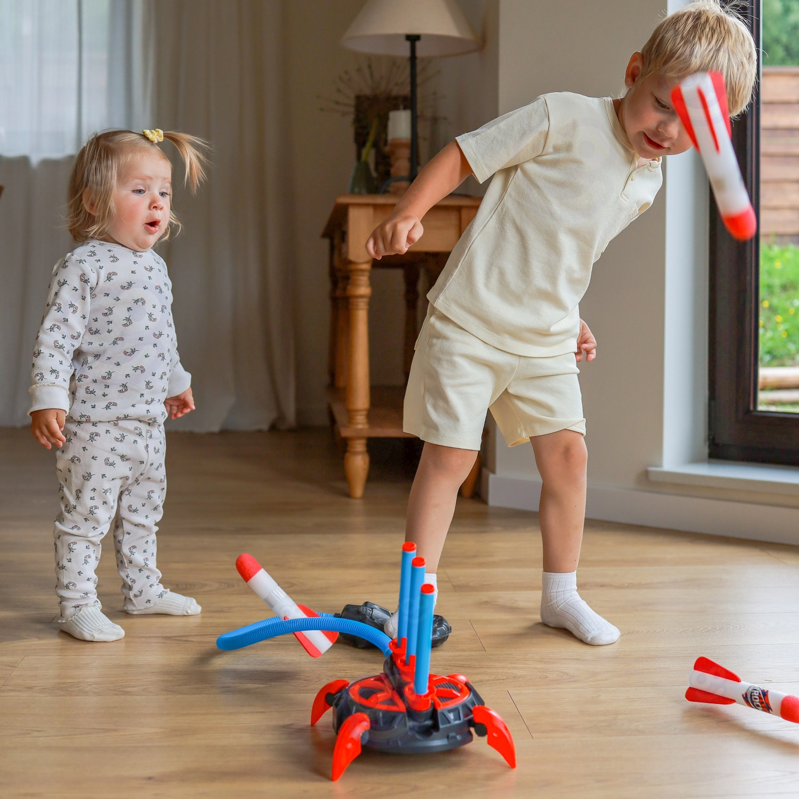 El juguete fomenta la motricidad gruesa, las habilidades de coordinación y la curiosidad por la ciencia. Gracias al sencillo montaje sin herramientas, es ideal para el jardín, el parque y el patio; y las puntas blandas de los cohetes garantizan una diversión segura sin bordes afilados.