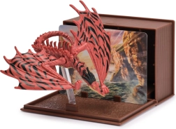 Empaque con estilo en forma de libro con relieve de dragón que sirve como estuche portátil y base de exhibición. Abre el libro y tendrás al instante una escena para tu modelo.