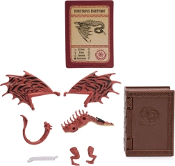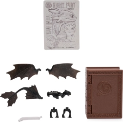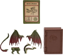 Algunos modelos de dragones se ensamblan a partir de varias piezas y se guardan en el libro. Las cartas incluidas, con ilustraciones y estadísticas, amplían las posibilidades de juego.