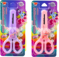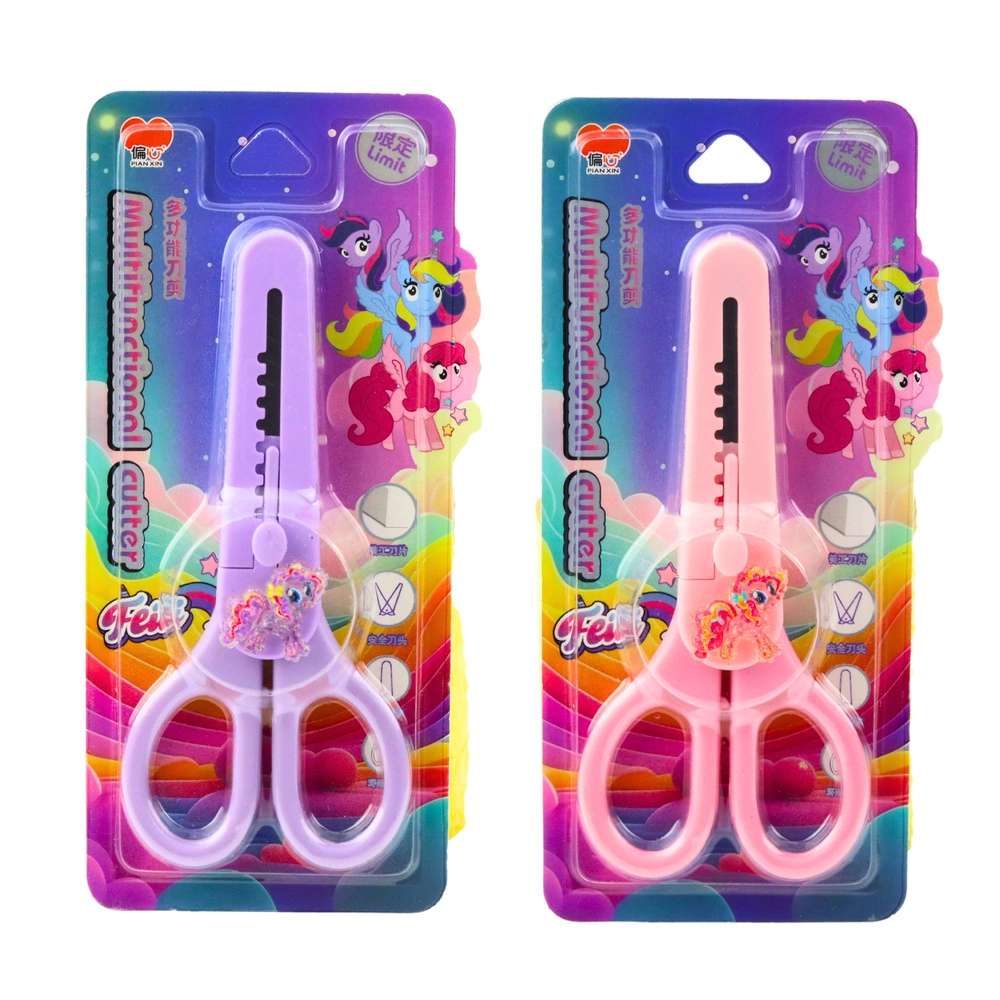 Las tijeras con funda protectora y motivo decorativo de caballito son ideales para los usuarios más pequeños. Tienen empuñaduras ergonómicas adaptadas a manos pequeñas y el caballito decorativo con elementos brillantes les aporta un aspecto único. Son perfectas tanto en casa como en la escuela para manualidades, recortes y proyectos creativos. La funda protectora integrada de la hoja evita lesiones accidentales y permite un almacenamiento seguro en estuche, mochila o cajón.