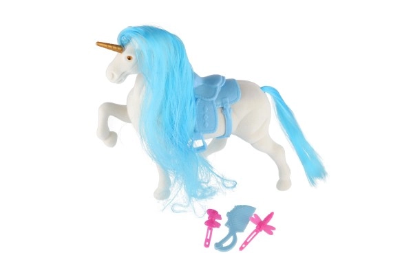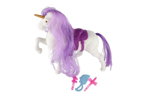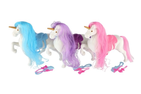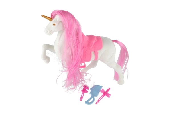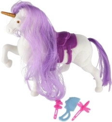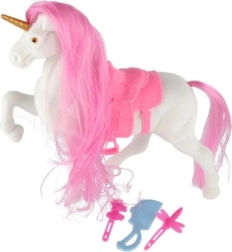 Hermoso unicornio con crin para peinar, el compañero ideal para cualquier aventura. Incluye una montura y accesorios con estilo que garantizan horas de diversión para tu pequeño.