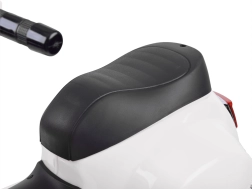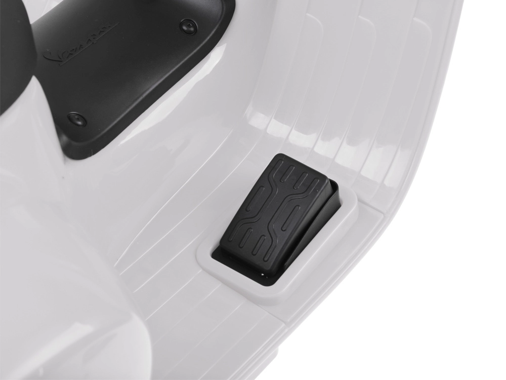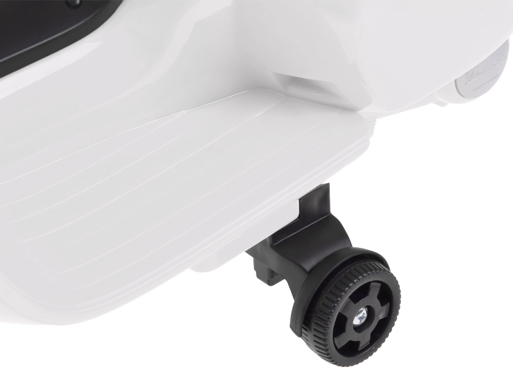 La pequeña VESPA está diseñada para los más pequeños para que disfruten de sus primeros paseos con total comodidad y seguridad. Gracias a sus dimensiones compactas, es adecuada para interiores y para aceras y parques al aire libre. Las ruedas estabilizadoras auxiliares aportan seguridad y equilibrio durante la conducción, mientras que el faro delantero y los elementos luminosos añaden un aspecto atractivo.