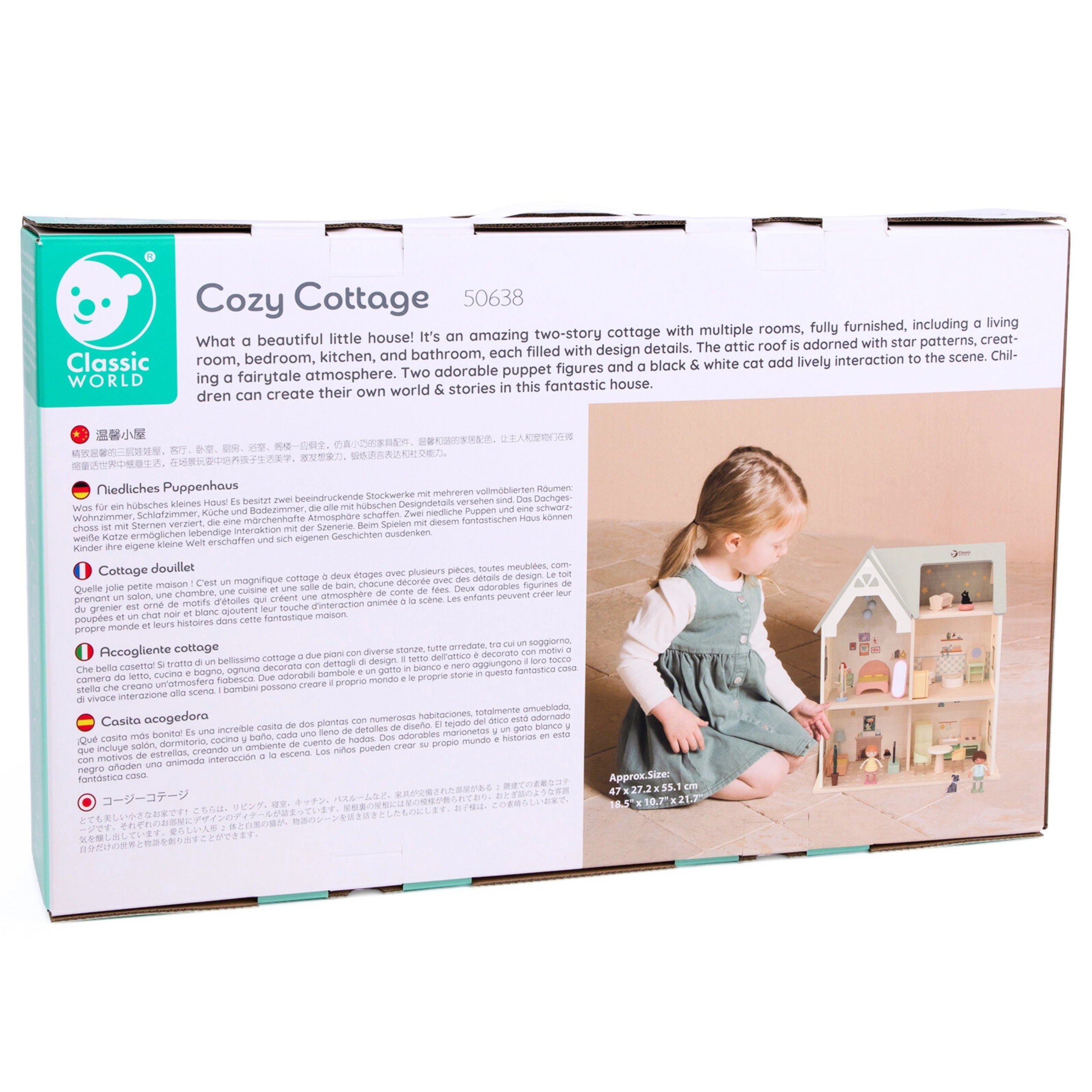 Casa de muñecas de madera con equipamiento de Classic World ofrece una hermosa casa de dos pisos con ático, ideal para pequeños amantes del juego creativo.