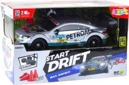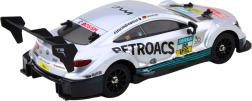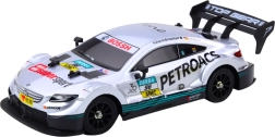 El coche incluye un mando de 2,4 GHz, que asegura un control preciso con un alcance de hasta 25 metros. La iluminación LED especial —delantera, trasera y bajo el chasis— aporta un aspecto atractivo incluso al conducir al anochecer.