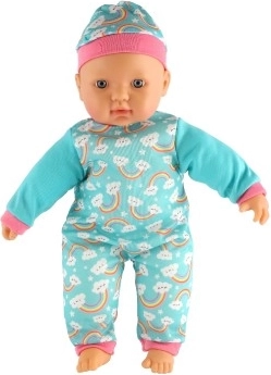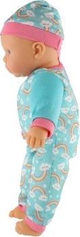 Esta adorable muñeca de 40 cm tiene un agradable cuerpo blandito, perfecto para acurrucarse y fácil de sostener incluso por los más pequeños. Su conjunto con motivo arcoíris fomenta el juego creativo e imaginativo.