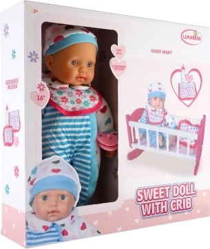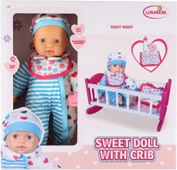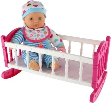 Esta vez presentamos una muñeca con cuna única, que será un gran complemento para el mundo de juego de cualquier niño. El cuerpo suave de la muñeca permite un manejo y transporte fáciles, aportando realismo a los movimientos durante el juego. La cuna rosa con rayas blancas y motivo de corazones es ideal para dormir a la muñeca, mientras que accesorios como el biberón y el chupete crean una experiencia de cuidado del bebé más realista.
