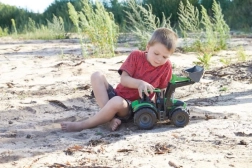 Este tractor con remolque, detallado y bien acabado, es ideal para jugar en el arenero, el jardín y en casa. El cargador frontal funcional permite recoger fácilmente arena o material pequeño, y el remolque con caja basculante asegura un transporte cómodo y una descarga sencilla de la carga. Las ruedas grandes y perfiladas y los ejes metálicos de 6 mm garantizan estabilidad y resistencia incluso en juego intensivo.