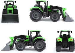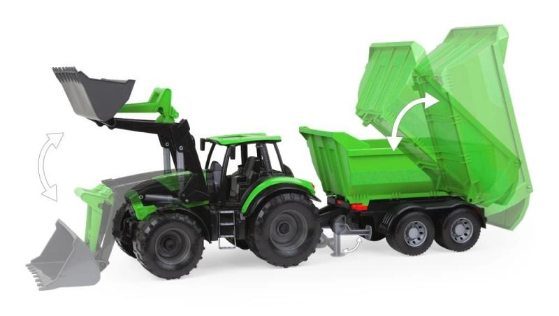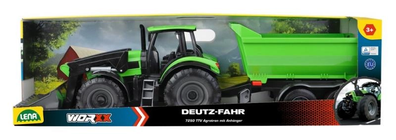 El robusto tractor LENA WORXX DEUTZ-FAHR con remolque y cargador frontal funcional ofrece a los niños a partir de 3 años mucha diversión en casa y al aire libre. El juguete está fabricado en la República Checa con plástico de alta calidad, tiene ejes de ruedas metálicos y es totalmente funcional de forma mecánica: carga, transporta y descarga. Cumple con las normas de seguridad de la UE y, gracias a su fabricación resistente, ofrece larga vida útil y máximo valor de juego.