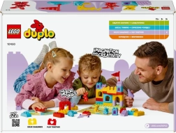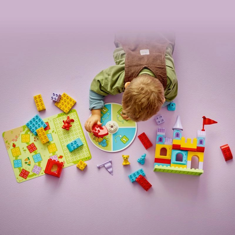 Este ingenioso juego y set de construcción 2 en 1 de LEGO DUPLO ofrece un aprendizaje divertido a través del juego. Construid juntos un colorido castillo, girad el indicador y moved las figuras de animales por el tablero. Según el color en el que caigáis, añadid al castillo la pieza correcta: ¡gana el espíritu de equipo cuando todos los personajes llegan al castillo!