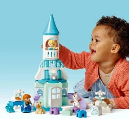 Descubre el encantador castillo de hielo de la película FROZEN, donde los niños pueden recrear escenas favoritas e inventar sus propias historias. El set incluye las figuras de Elsa, Anna, Olaf, el pequeño Sven y el gigante de nieve Pushka, lo que hace el juego de rol aún más divertido. El ladrillo luminoso crea una colorida “aurora polar”, mientras que la puerta abatible y las faldas textiles de las princesas estimulan los sentidos.