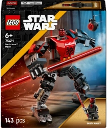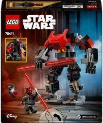 Incluye una minifigura de Darth Maul con su legendario doble sable de luz rojo, que puede acoplarse a la espalda del meca para guardarlo de forma segura.