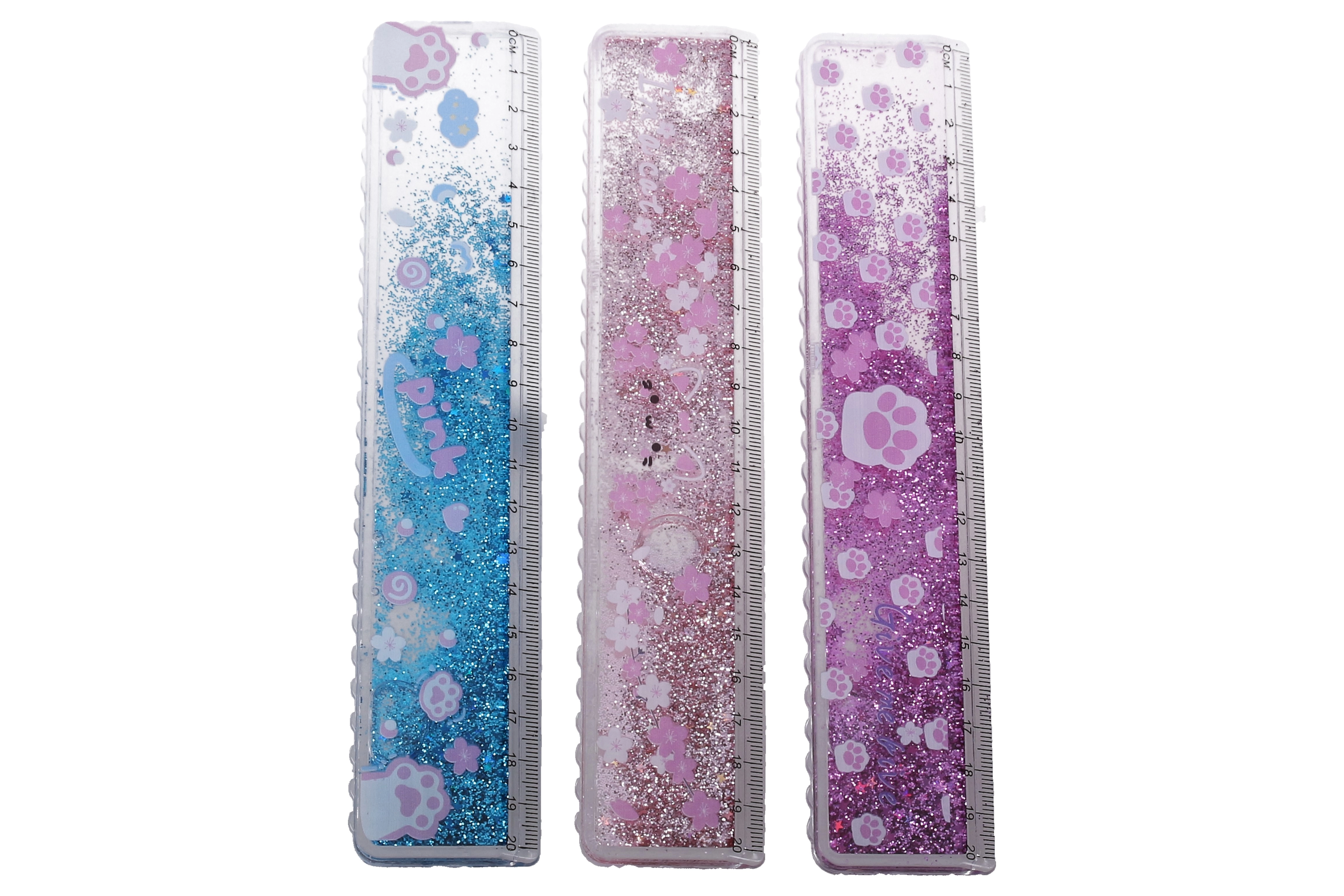 Regla Huella de Gato ofrece estilo y funcionalidad con líquido y purpurina en su interior. Un gran complemento para el estuche.