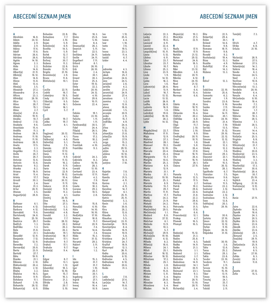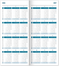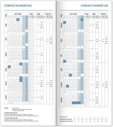 Práctica agenda fina en color azul con distribución mensual, que cabe literalmente en cualquier parte. Incluye calendario checo con nombres, festivos y días conmemorativos.