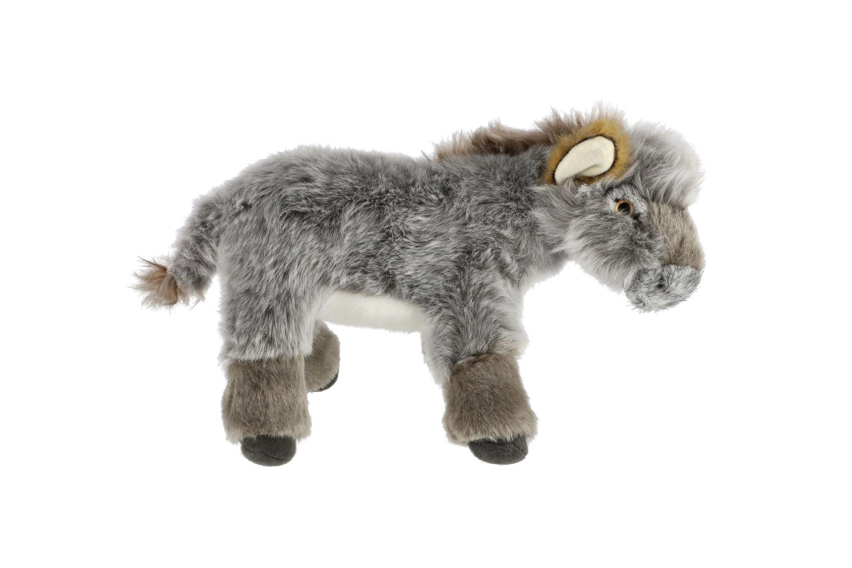 Este tierno burrito se convertirá en un juguete favorito y un compañero tranquilizador para la cuna. Su peluche suave invita a los mimos y su cuerpo ligero y blando es seguro incluso para las manitas más pequeñas. El color gris neutro y los detalles realistas resultan naturales y adorables.